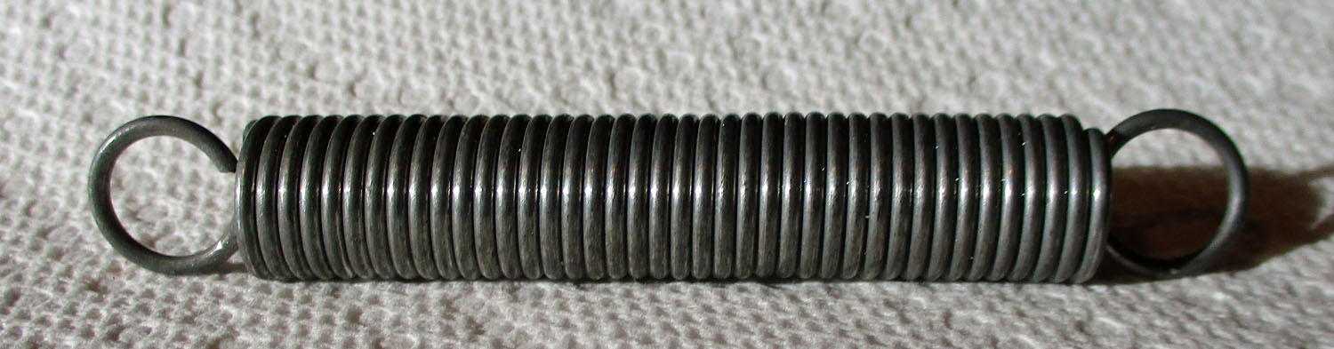 USED This metal spring measures 3 1/2″ long overall and has an outer diameter of 1/2″. The spring alone is 2 1/2″ long, and the wire is 1/32″ thick. The manufacturer and part number are unknown.