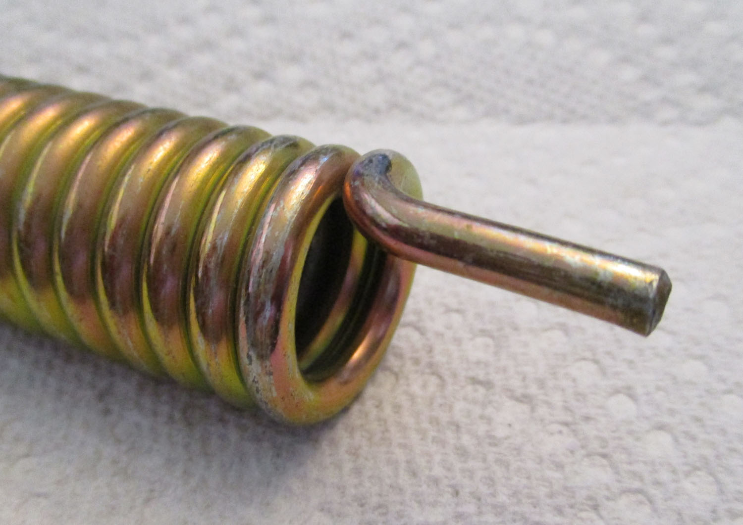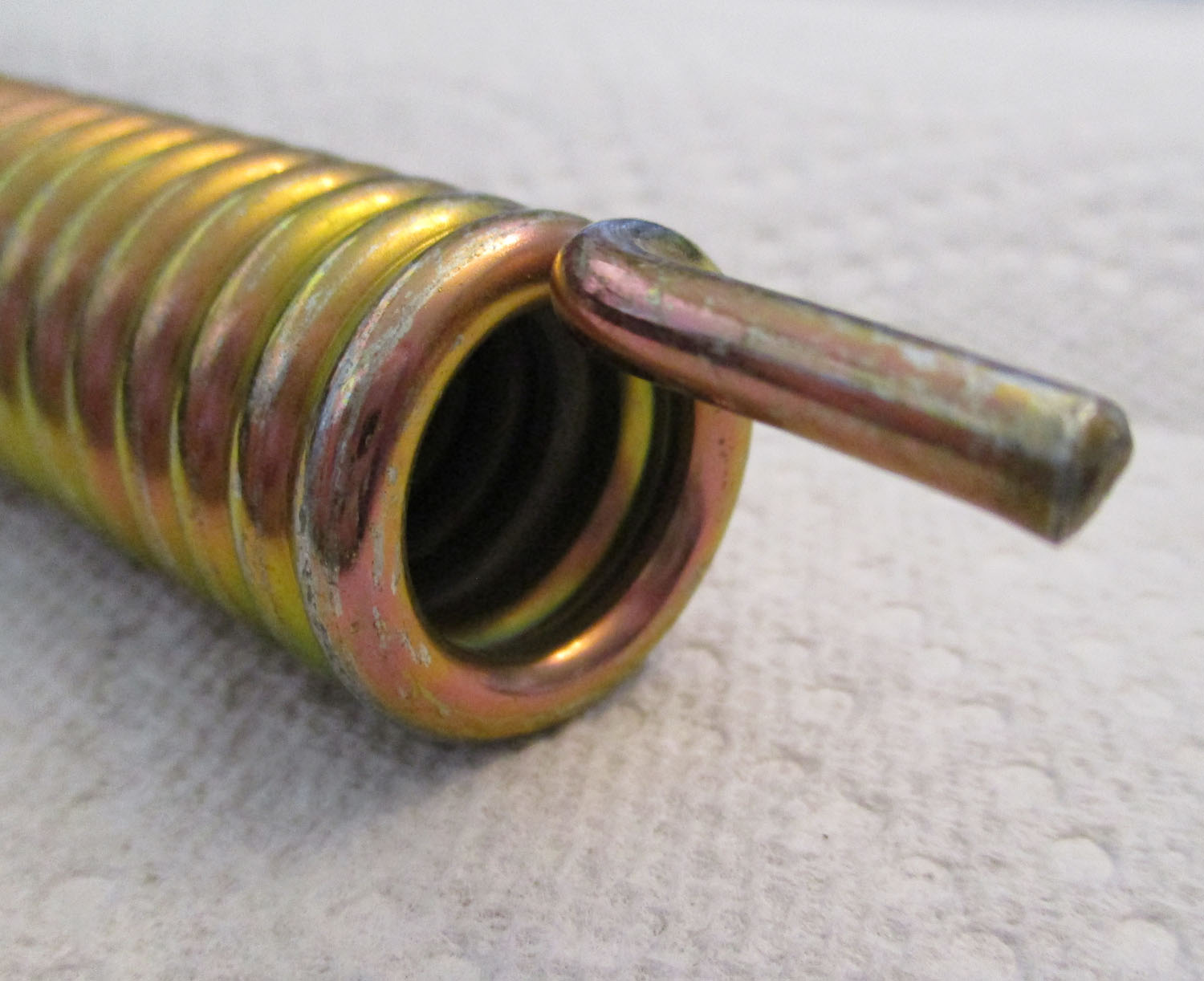 The spring is 8 1/2″ long overall. It has an outer diameter of 1″ with an inner diameter of 11/16″.