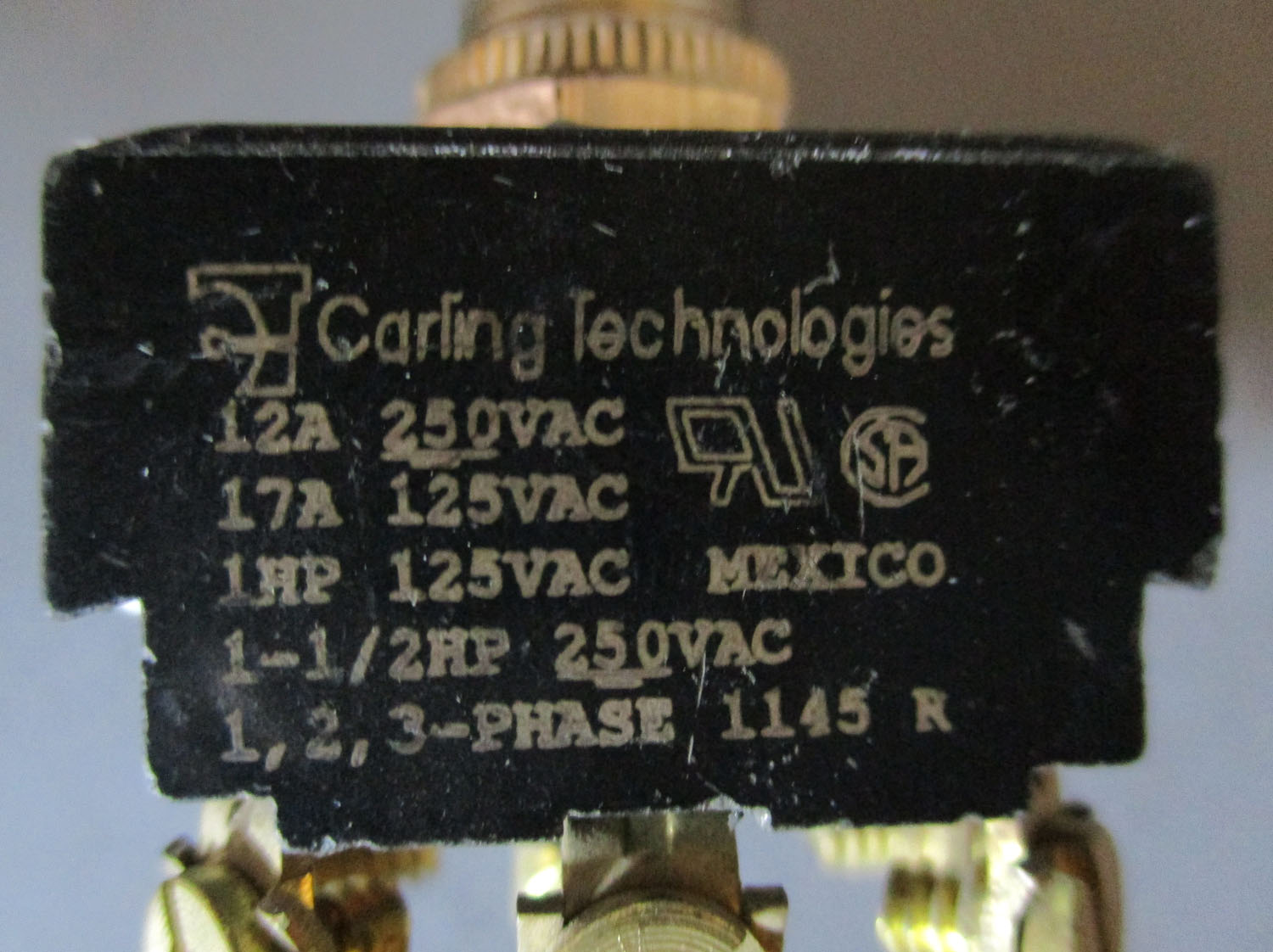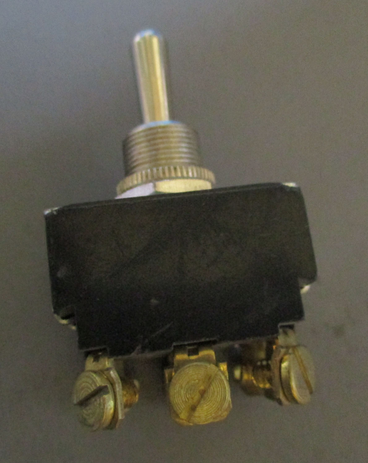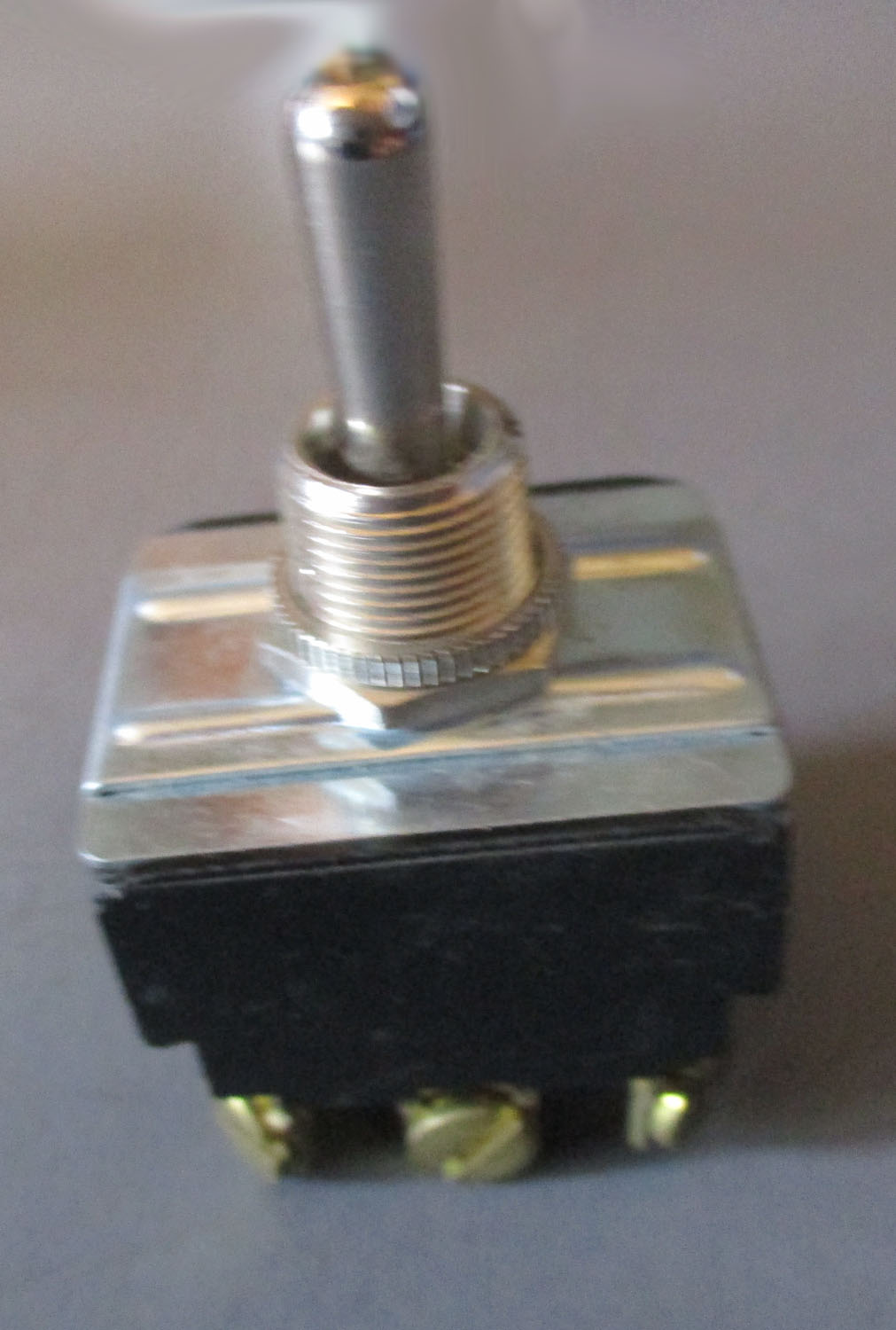 NEW This is a three-pole, double-throw maintained switch for a Decomatic washer. The switch is 1 1/8″ tall, 1 5/16″ wide, and 1 1/16″ deep. The lever extends 1 1/8″ from the main body. The threaded section has an outer diameter of 7/16″. The indicated specifications are: