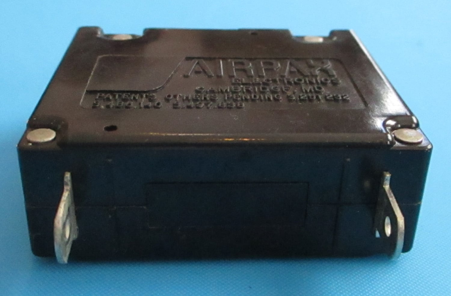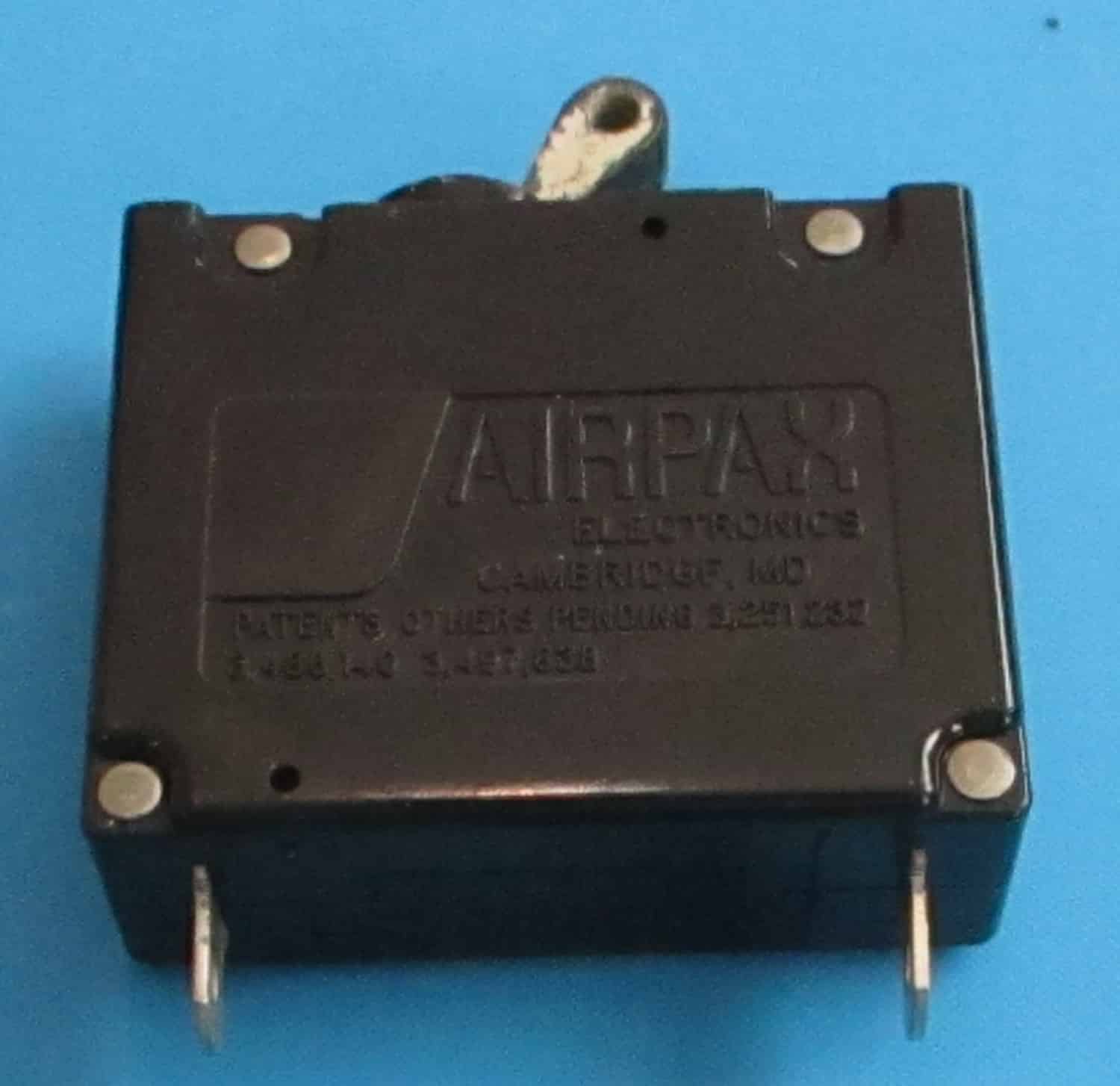 USED This plastic and metal Airpax circuit protector is 2″ long, 3/4″ wide, and 2 1/2″ high. The prongs are 5/8″ long and 1/4′ wide. The specifications are: