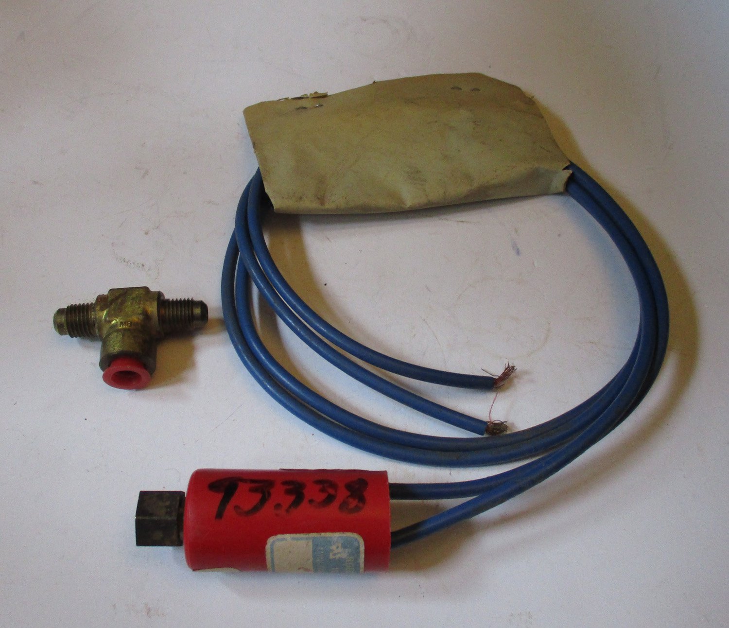 NEW This Schlueter, plastic and metal pressure switch with tee has two 36″ plastic covered connecting wires. The switch is 2 5/8″ high. The red area is 2 1/16″ high with a 1″ outer diameter. The top is 9/16″ high with a 9/16″ outer diameter and a 3/8″ threaded inner diameter. The connector is 2″ long, 1 1/16″ high and 5/8″ wide. The ends have a 7/16″ threaded outer diameter with a 3/16″ inner diameter. The larger opening has an 11/16″ outer diameter with a 3/8″ threaded inner diameter. This part has a Schlueter part number of 93338 and a Mueller part number of 31427.