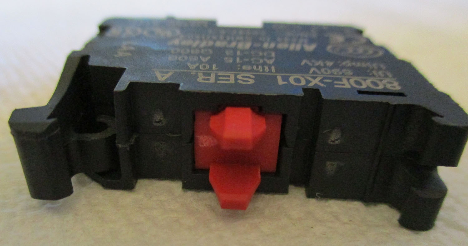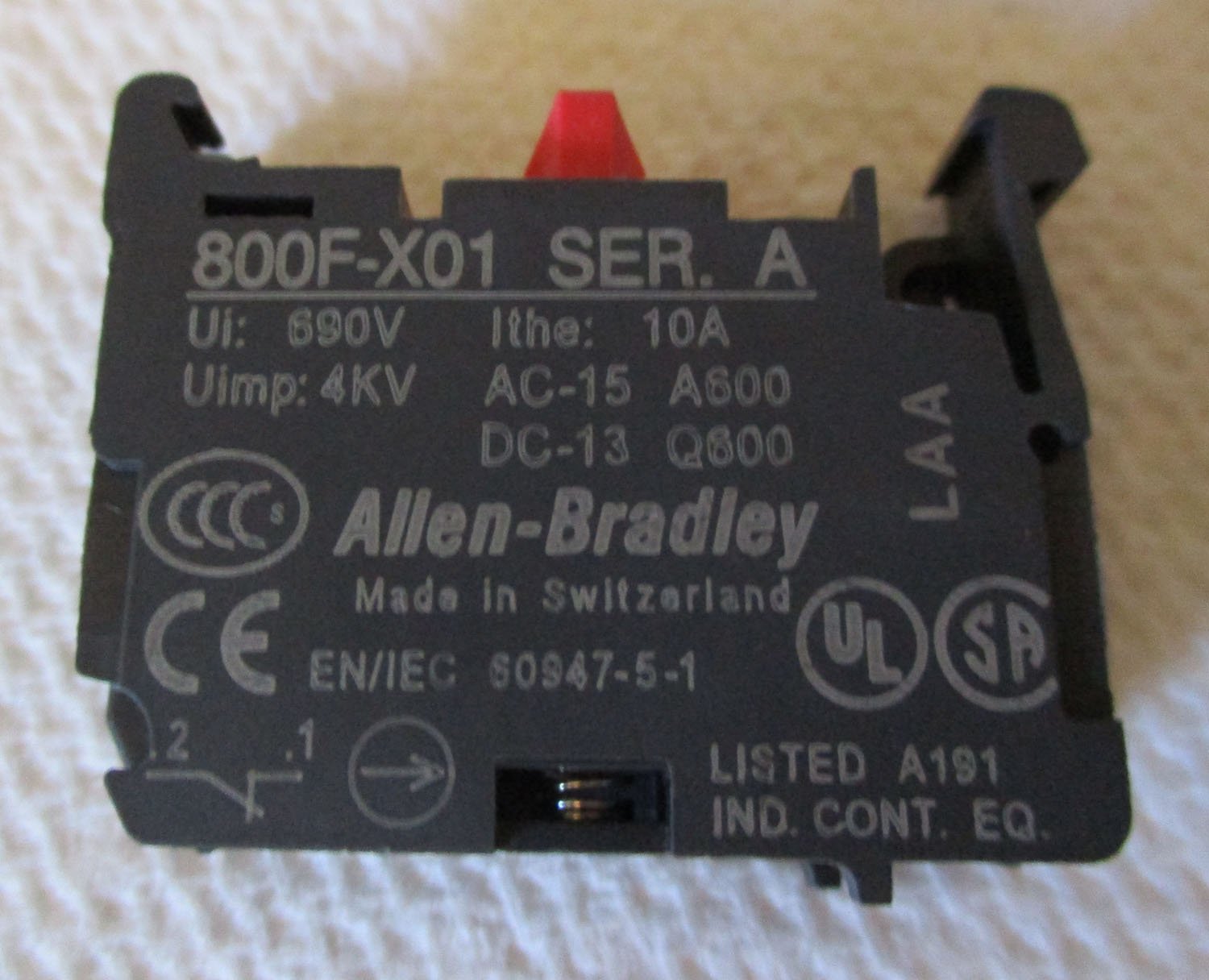 NEW This is an Allen-Bradley 800F-X01 Series A selector switch made of plastic and metal. It is a normally closed switch with no latch. The switch measures 1 3/8″ long by 1 1/16″ tall by 3/8″ deep. The indicated specifications are 10 amperes, 15 volts AC, and 13 volts DC. Other specifications can be viewed in the picture.