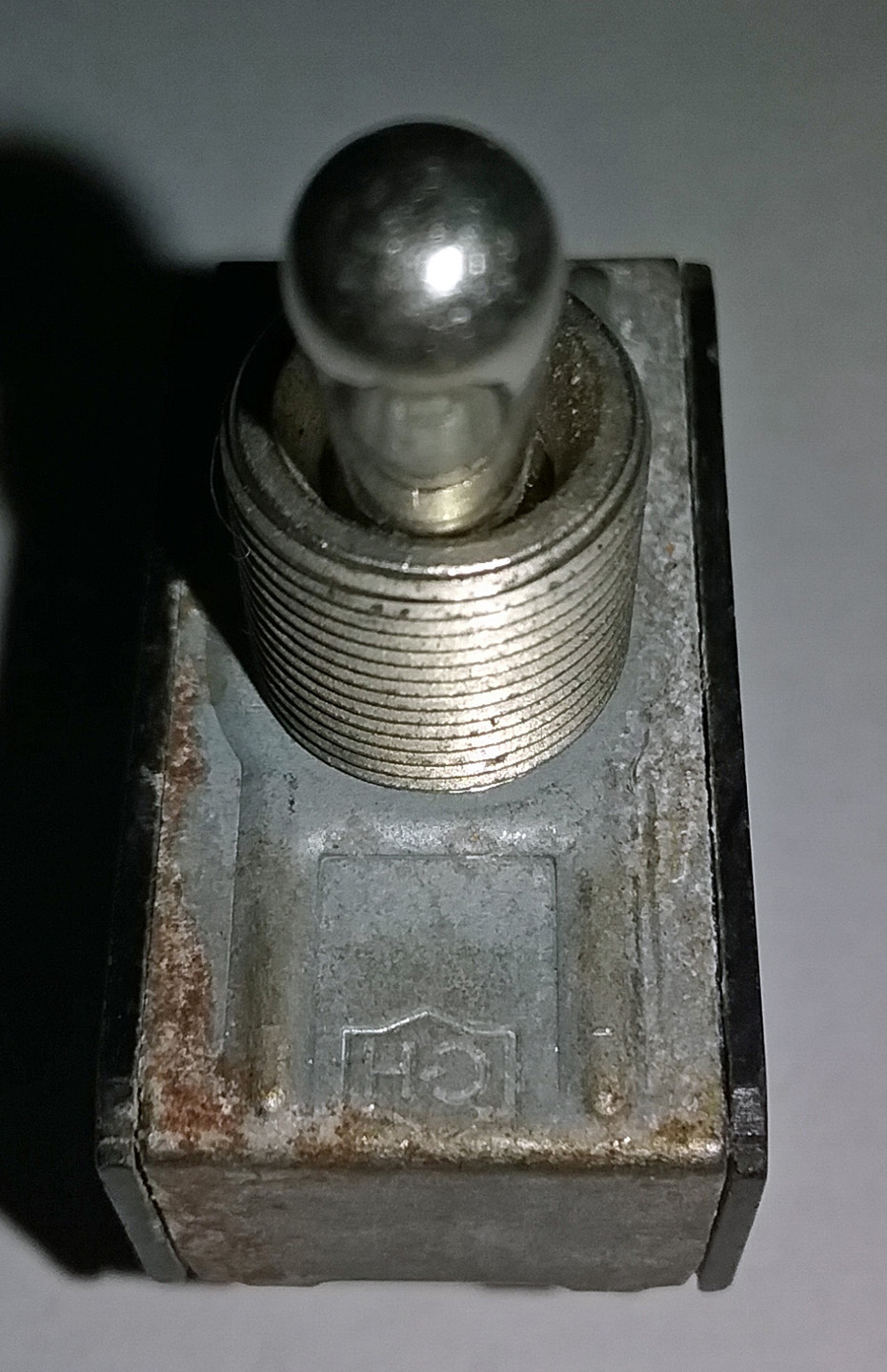 USED This Carling double pole single throw toggle switch measures for the box, 1 3/16″ long by 5/8″ wide by 5/8″ deep. From the top of the box to the tip of the switch measurs 1 1/16″. It operates at 20 amperes, 250 volts AC.It is made of metal and plastic. The UND LAB INC manufactuer number is 1105R.