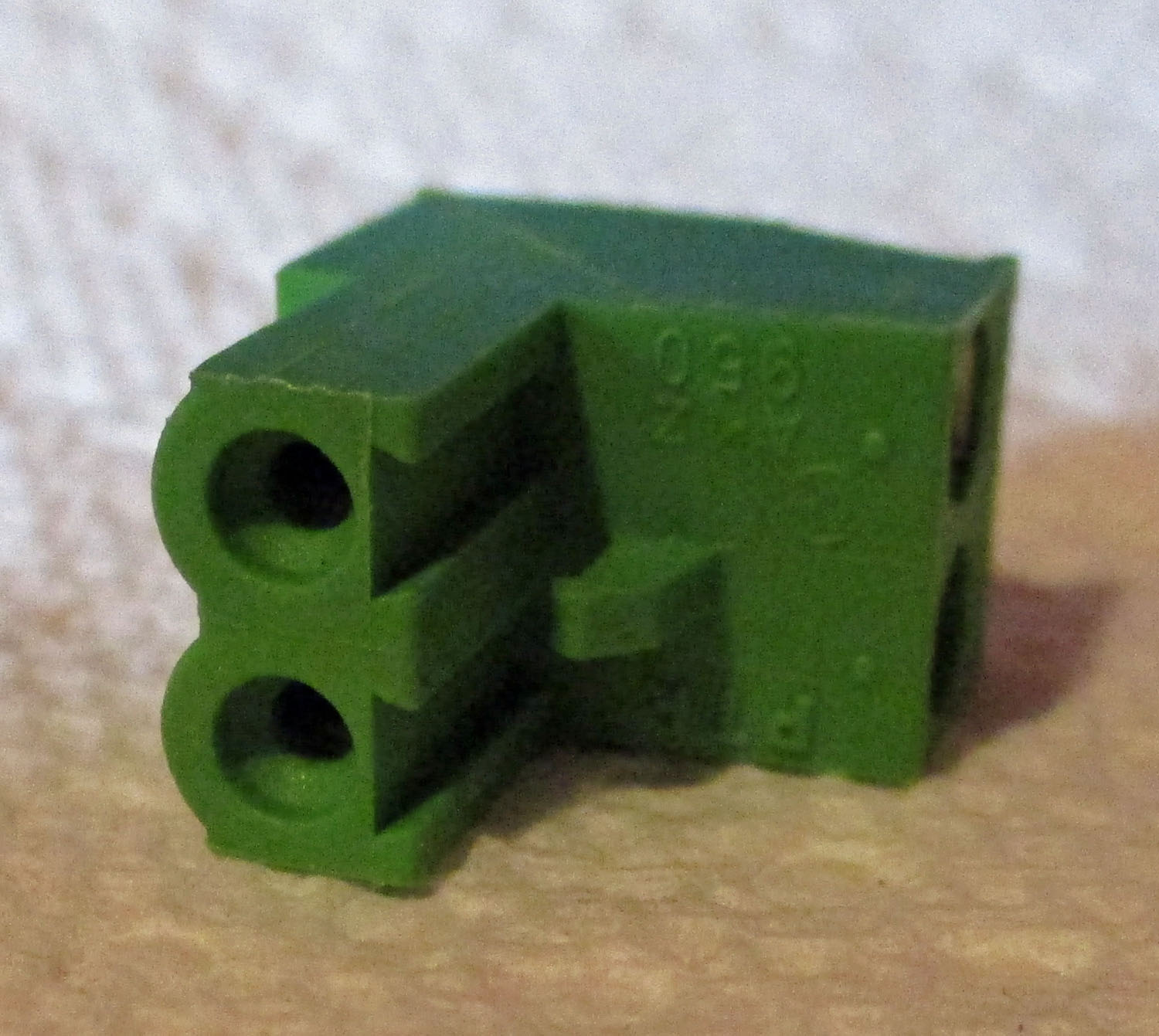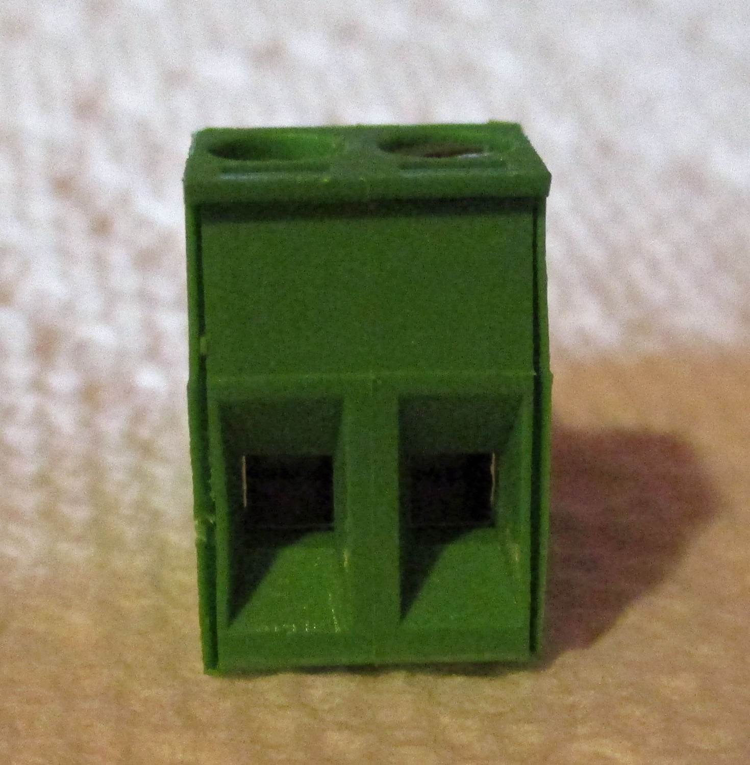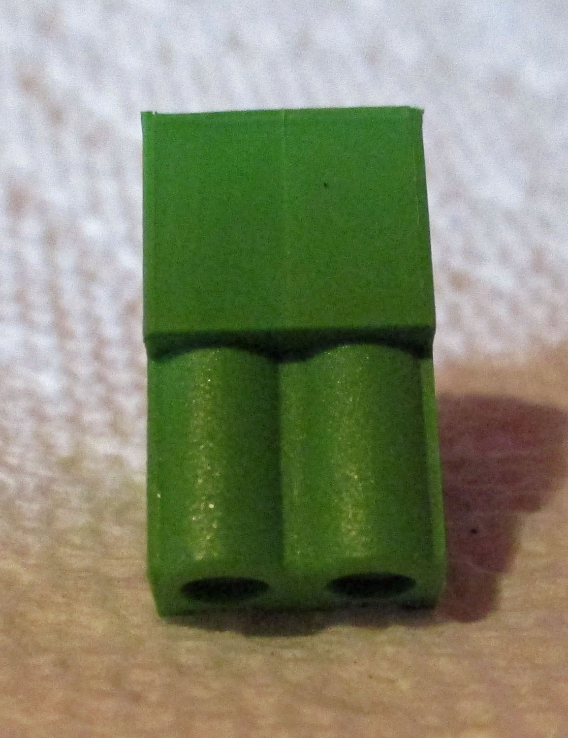 NEW This metal and plastic, older style green two-place terminal measures 11/16″ high by 3/8″ wide by 9/16″ deep. The Westfalia part number is unknown.
