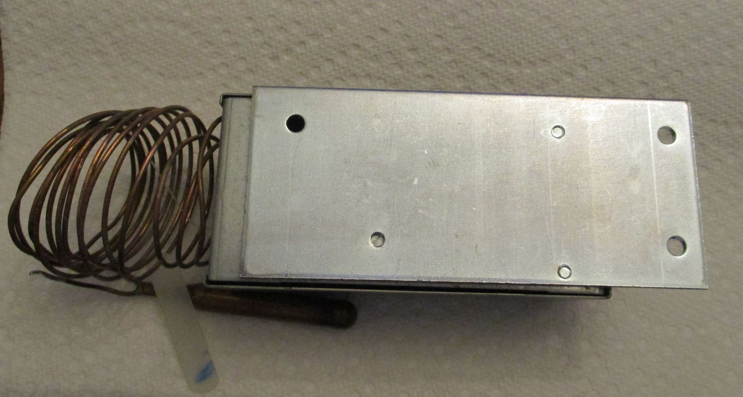 NEW This metal and copper thermostat measures 5 3/8″ long by 2 1/4″ wide by 2″ deep overall without the wire or probe. The probe is 3″ long with an outer diameter of 3/8″. The indicated specifications are: