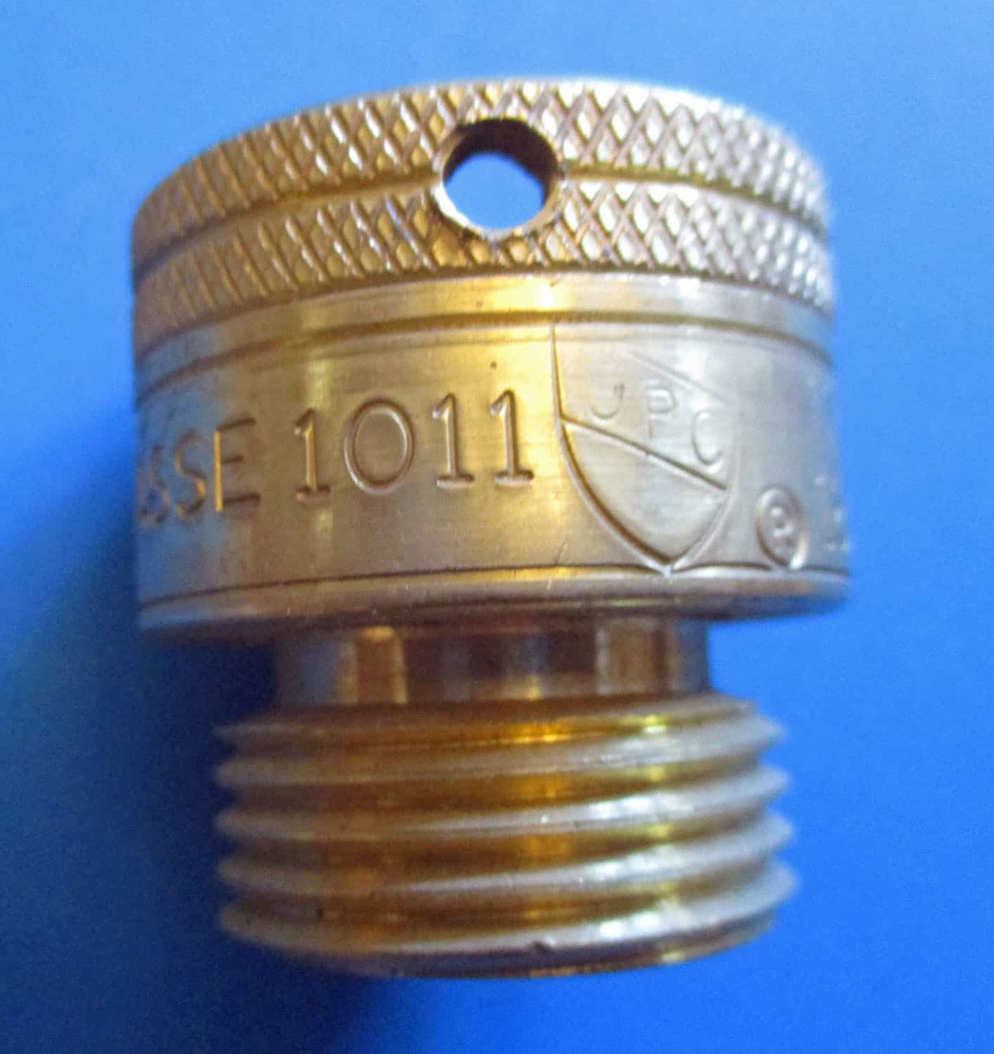 NEW This is a brass male threaded 3/4″ NPT vacuum break. The female side 1-12 thread size. It is rated at 12.5 PSI and 180° F. An original Mueller part with the marking Asse1011.