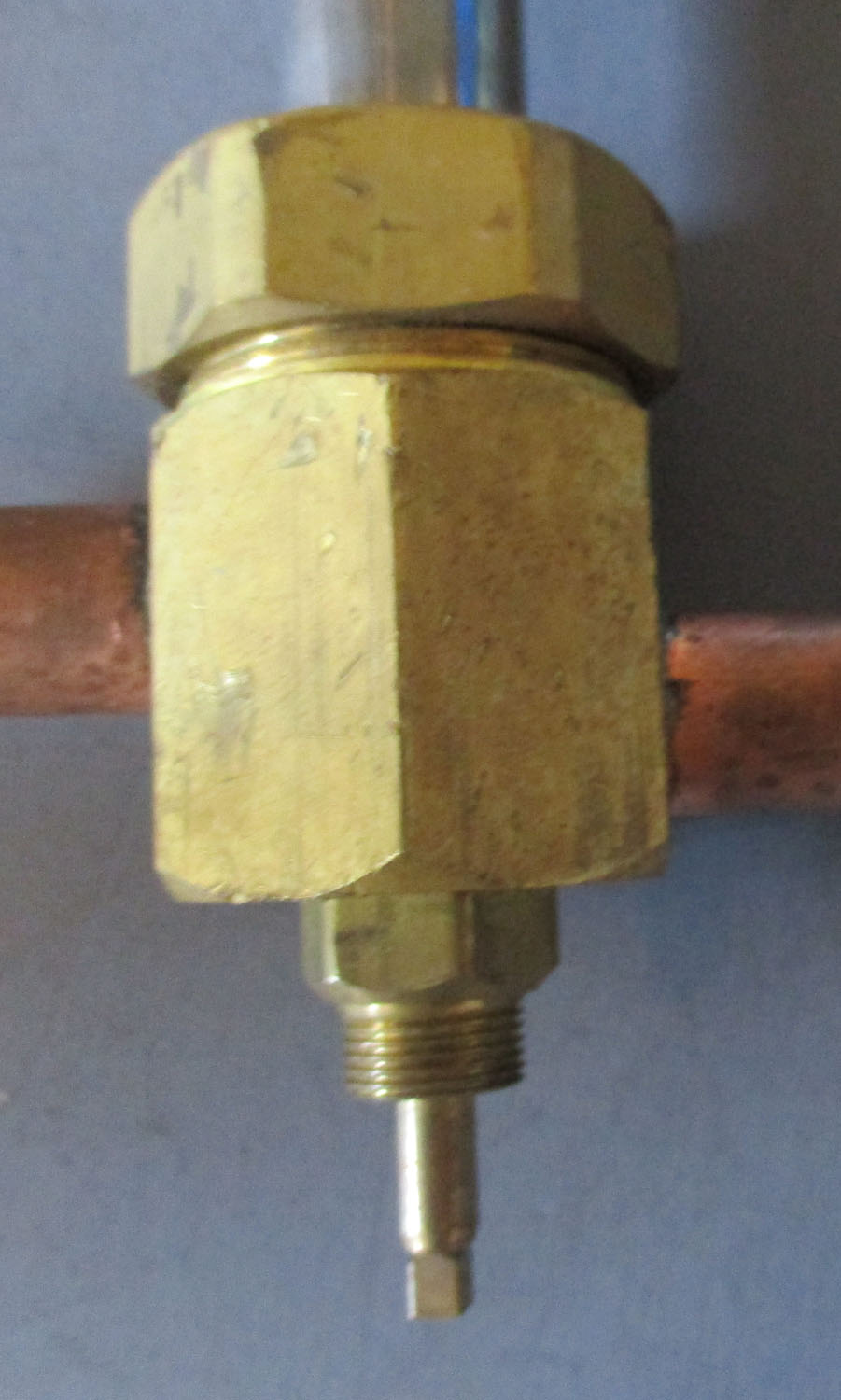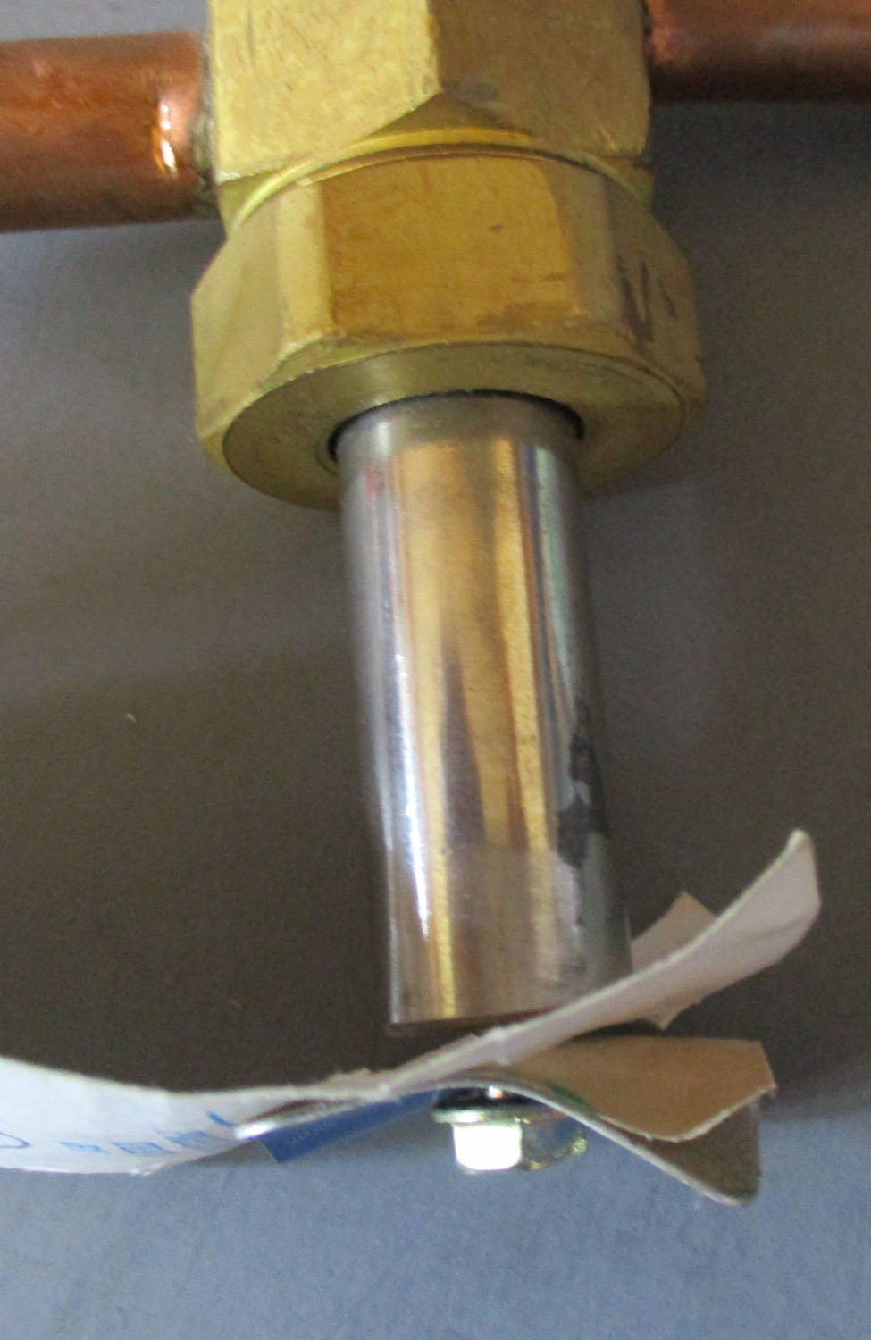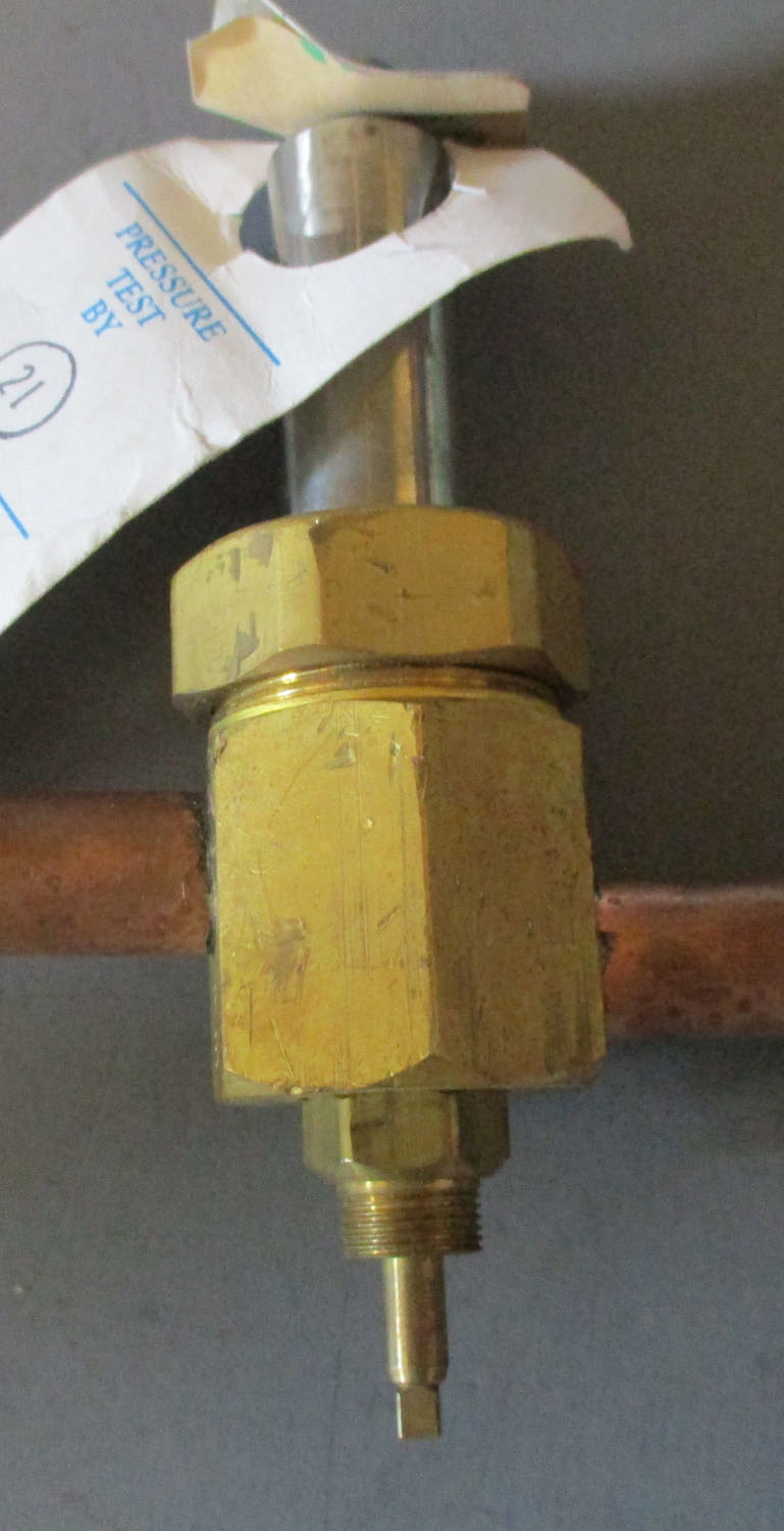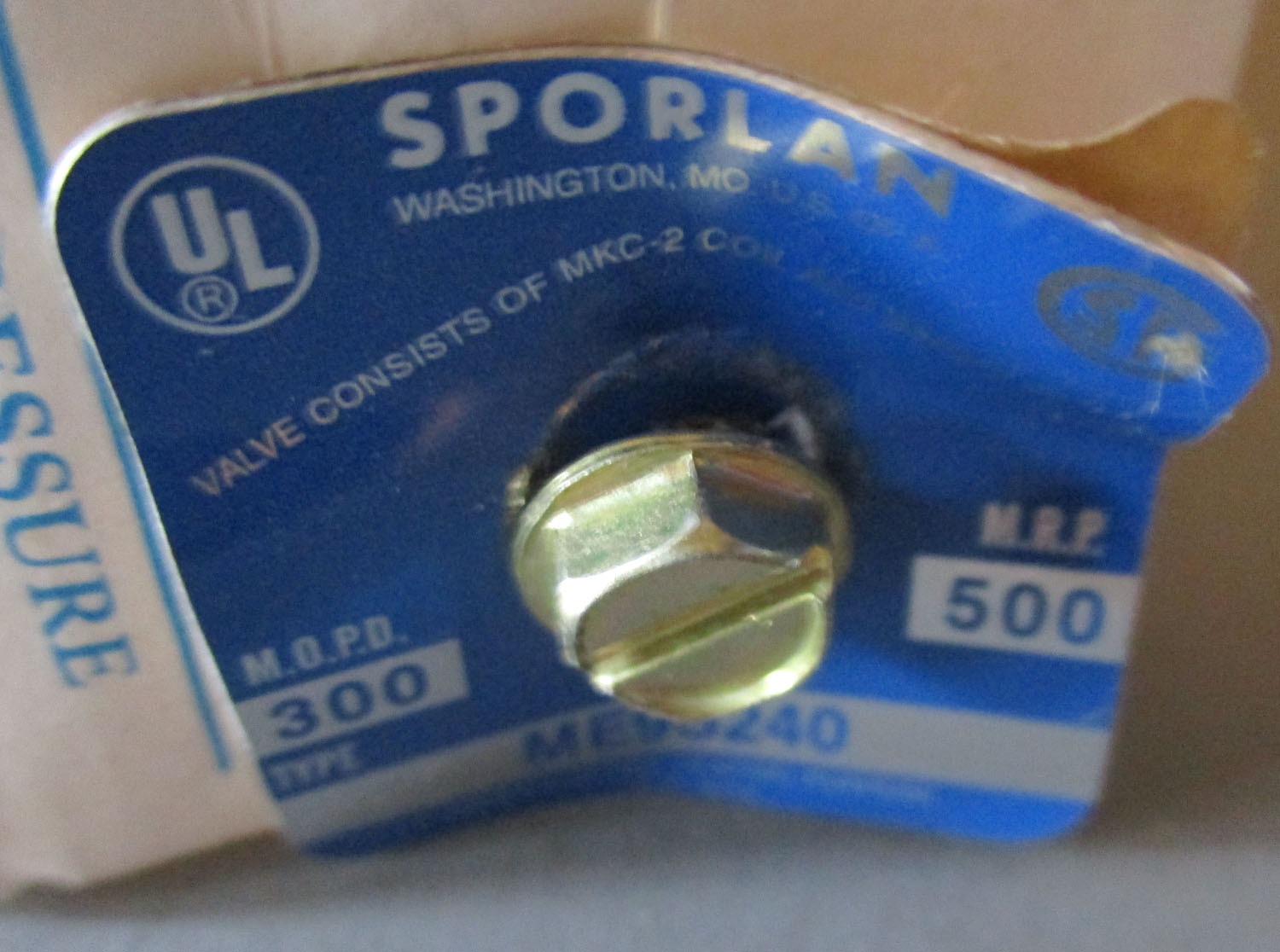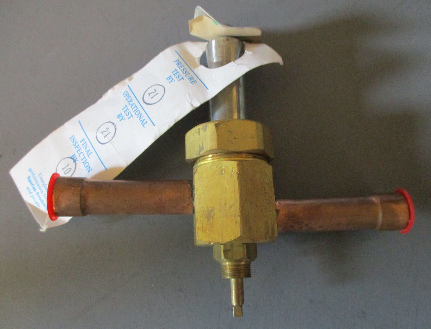 NEW This is a Sporlan E9 high-pressure solenoid valve that is made of metal with copper connections. There is no coil. The valve and connections measure 4 1/2″ tall by 5 1/8″ wide by 1 13/16″ deep. The cylinder has an outer diameter of 5/8″ and is 1 1/2″ long. The threaded end is 1″ long with the threads having an outer diameter of 7/8″. The copper connections are each 2″ long with an outer diameter of 9/16″ and an inner diameter of 1/2″.