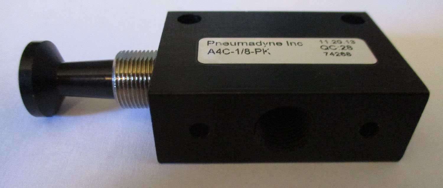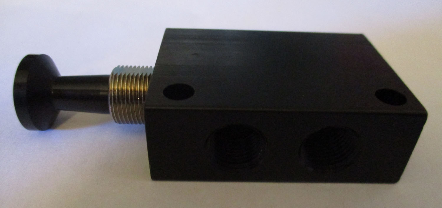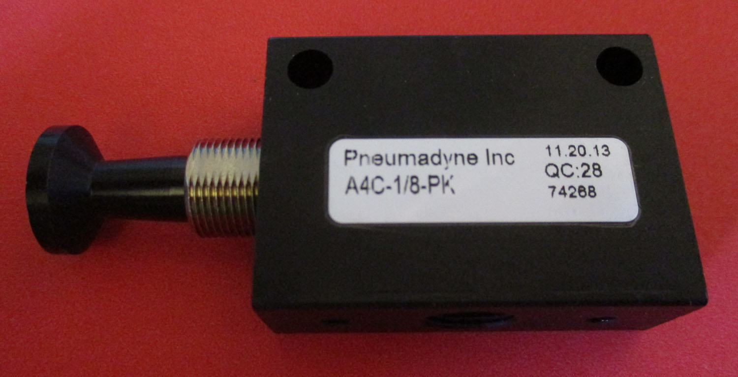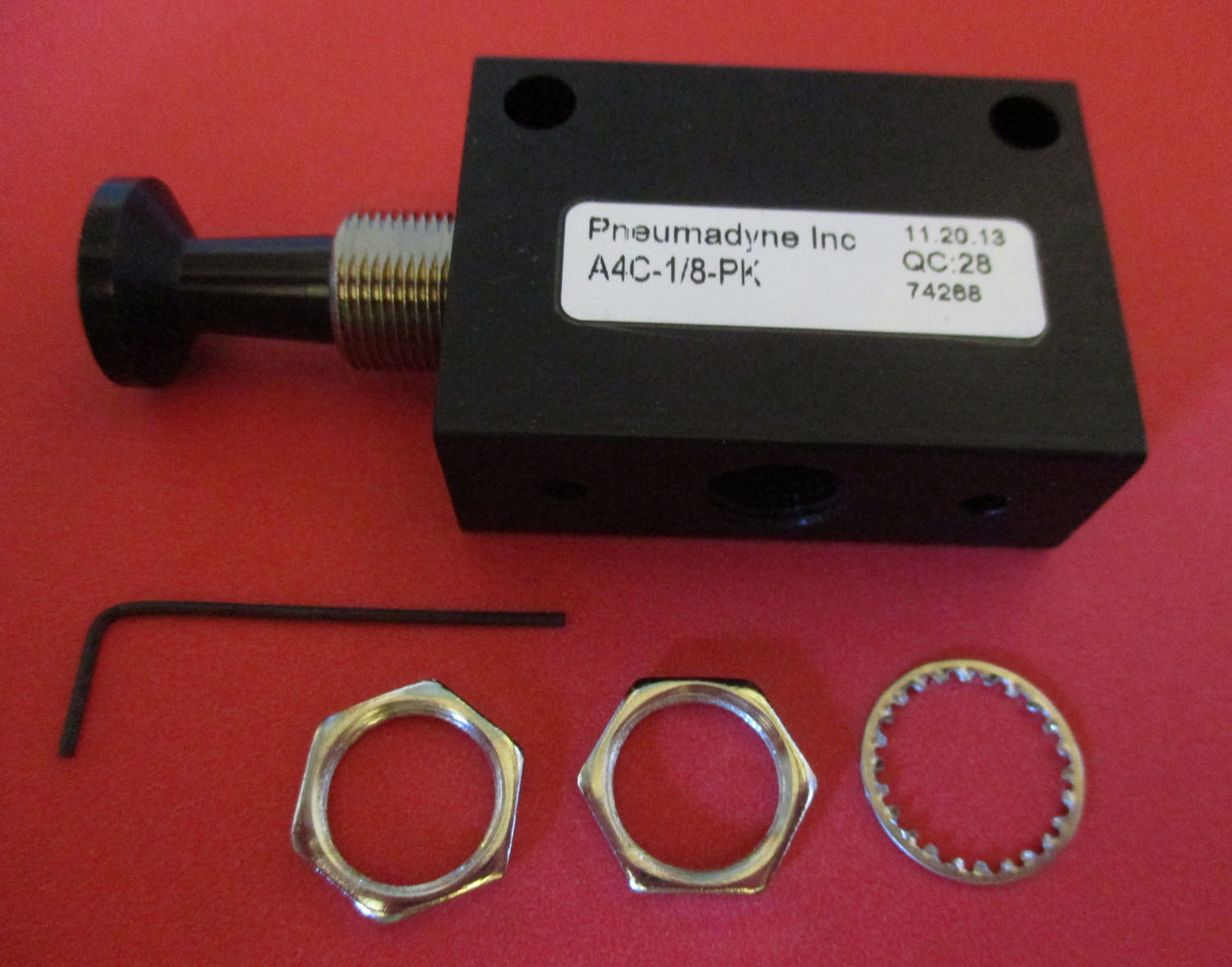 NEW This 4-way push/pull button valve is made of ceramic and stainless steel. The valve is 1 3/4″ tall, 1 1/4″ wide, and 1 5/8″ deep. The button extends 1″ from the main body of the valve. The large holes have an inner diameter of 5/8″, and the small holes have an inner diameter of 3/16″. The kit contains two hex nuts that are 9/16″ wide with an inner diameter of 7/16″, and an internal lock washer to fit. There is an Allen wrench also included.