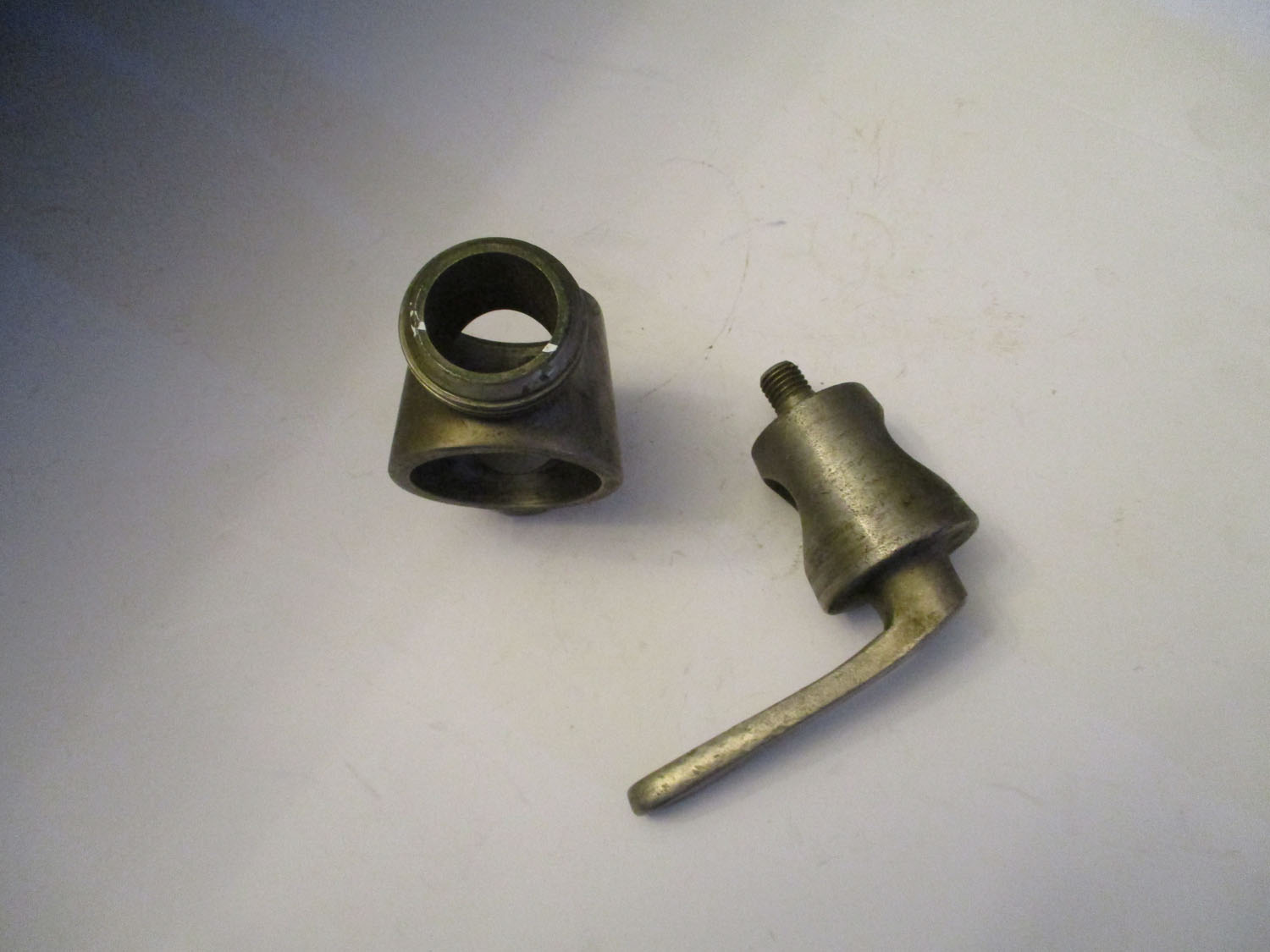 USED This valve body and handle measures: body 4 1/2″ long, 2 11/16″ outer diameter, 2 1/4″ inner diameter, body thread ends 1 7/8″ outer diameter, 1 5/16″ inner diameter, handle only 5″ long, handle body 2 3/16″ outer diameter, handle body thread end 1/8″ inner diameter. This product is made of metal. The manufacturer’s number is unknown.