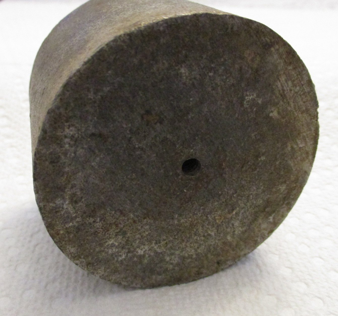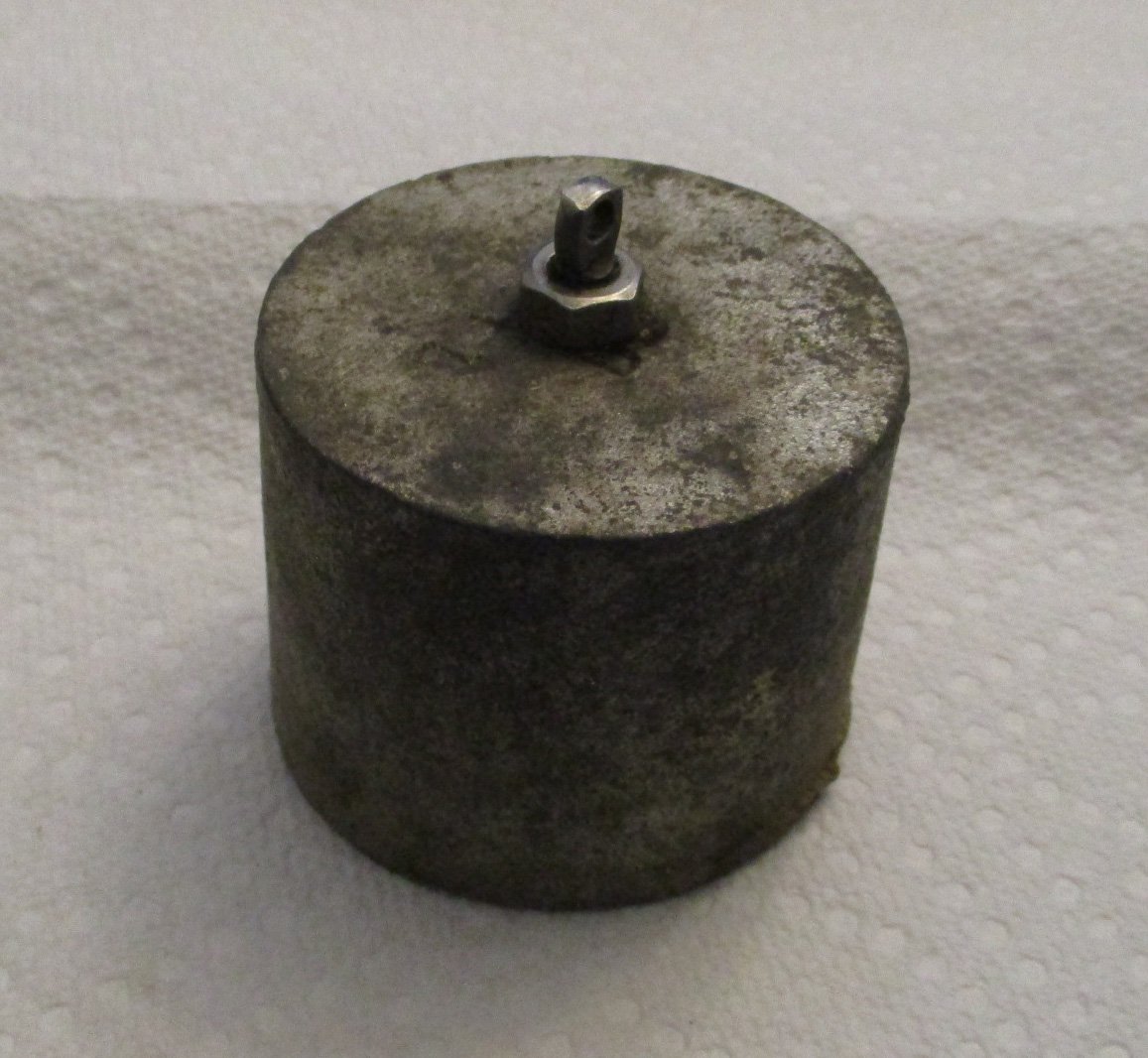 USED This iron detacher weight has an outer diameter of 2 3/8″ and is 2″ high without the handle. The handle is 9/16″ high by 7/16″ wide overall. The manufacturer and part number are unknown.