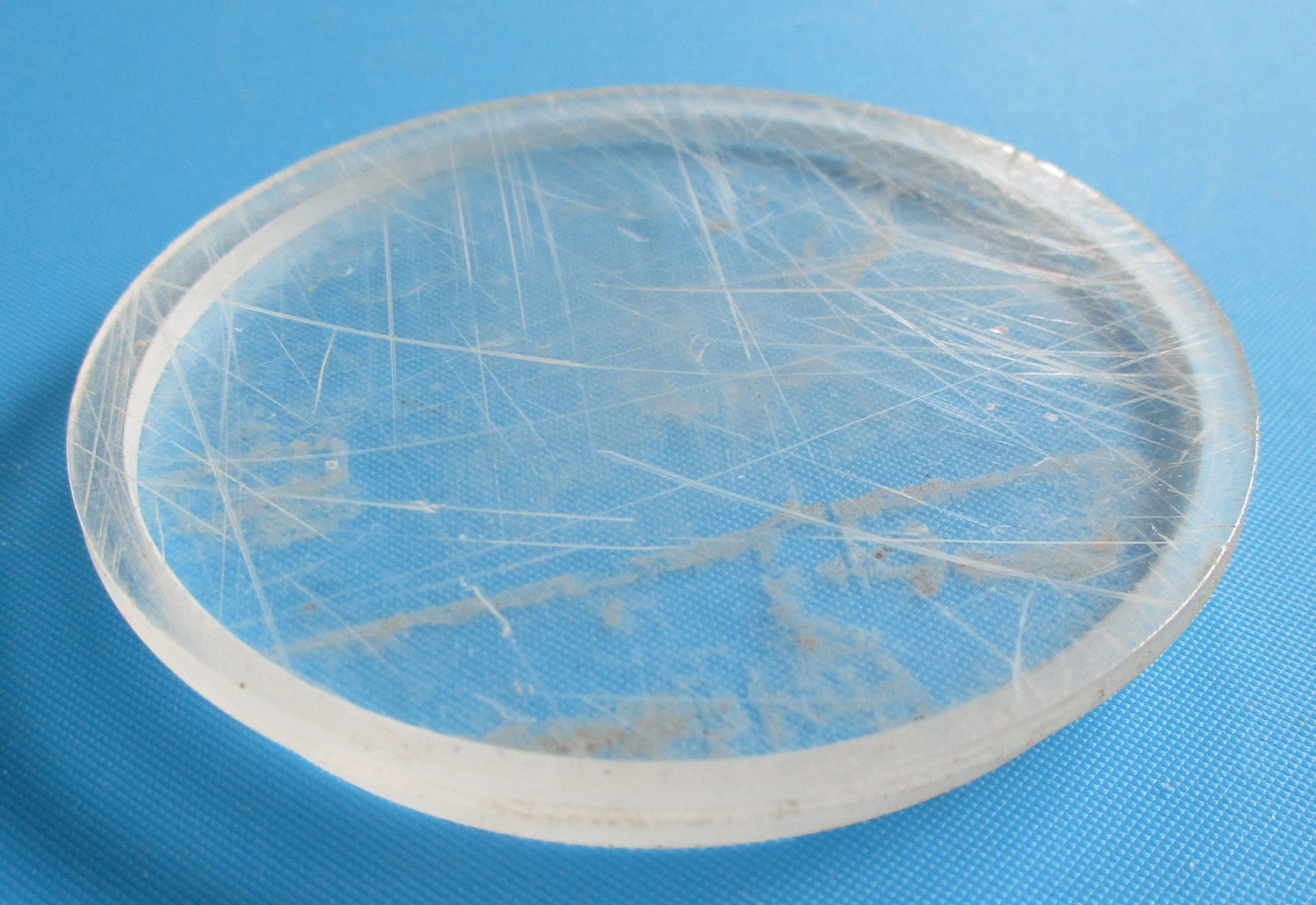 USED This Boumatic plastic window for a barrel style claw is 5/16″ thick, overall. 1/8″ has a 2 5/8″ outside diameter and 3/16″ has a 2 3/8″ outside diameter.